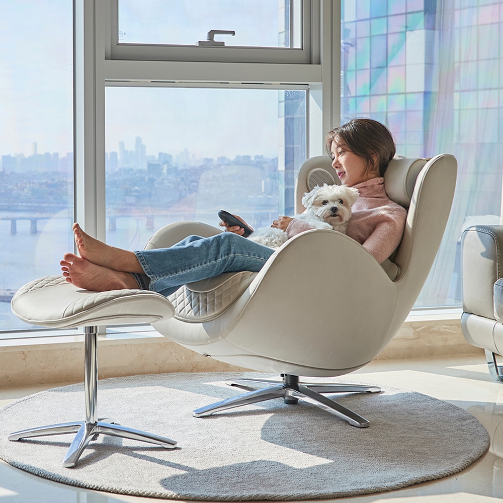 [알트레스트]AL002 마사지 리클라이너 천연 소가죽 아이보리 안락 수면 안마의자