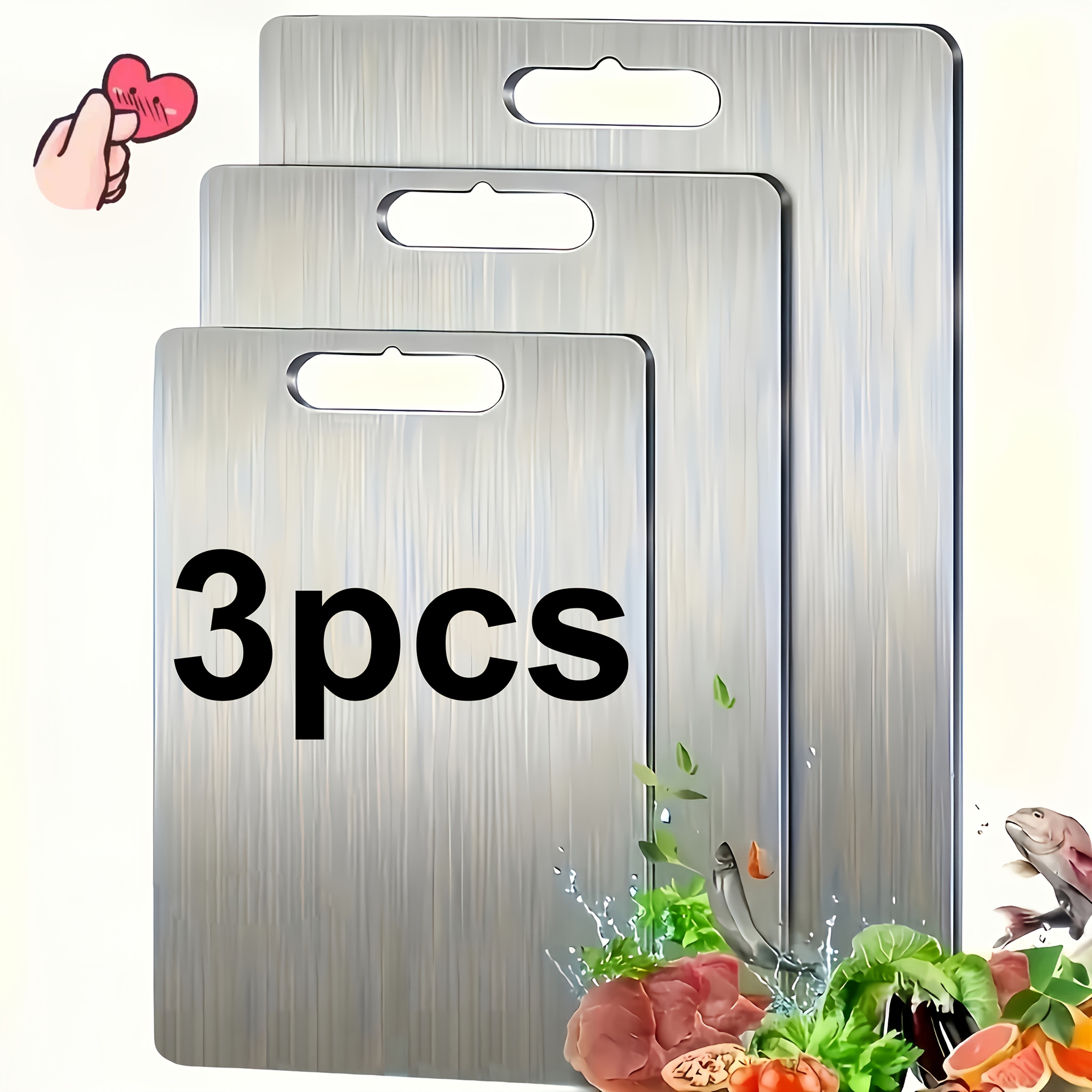 TEMU 손잡이가 있는 스테인리스 스틸 커팅 보드 3개 세트 - 식기세척기 사용 가능, 캠핑 및 피크닉용 양면 식품 안전 도마, 휴일 선물 (할로윈, 크리스마스, 이스터, 추수감사절) - 내구성 있는 주방 필수품, 모던|식기세척기|식기세척기