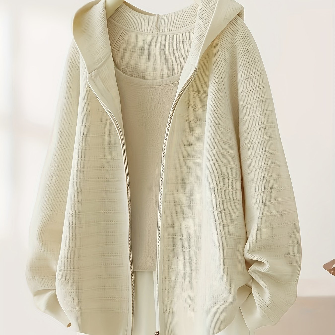 TEMU 여성용 우아한 후드 스웨터 재킷 - 지퍼 프론트 클로저, 루즈핏 가디건, 긴 소매 겨울 코트, 일상 및 정장용 - 가을/겨울 아우터웨어, 캐주얼 레이어링 피스, 텍스처 니트웨어, 편안한 니트, 스타일리시 후디, 오피스 웨어