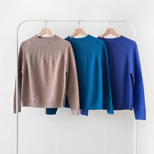 [옷자락] 여성 가을용 메리노울 케이블 목폴라 니트 보라색