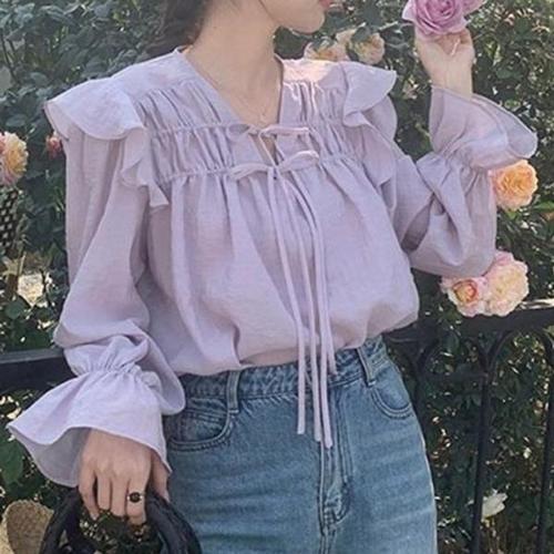 [엄지척]퍼플 프릴 스러운 보라색 블라우스 포인트 어깨 예쁜_19643693_667501