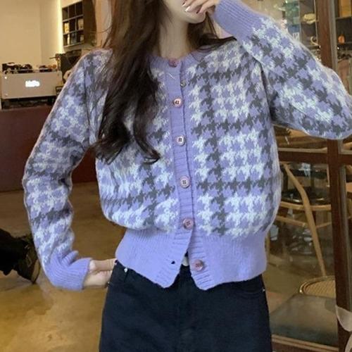 [엄지척]로맨틱 퍼플 패턴 니트 보라색 가디건_19801896_667501