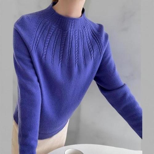[옷자락]여성 가을용 메리노울 케이블 목폴라 니트 보라색