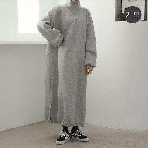 [보리맘]롱 지퍼 맨투맨 빅사이즈 롱 원피스 겨울 홈웨어 플러스 사이즈