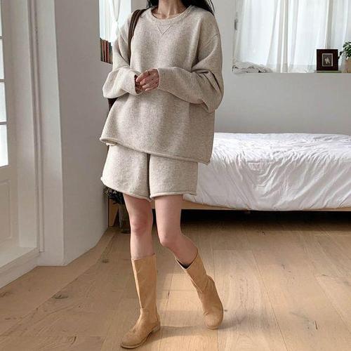 [보리맘]울 니트 티셔츠 반바지 셋업 겨울 여성 니트세트