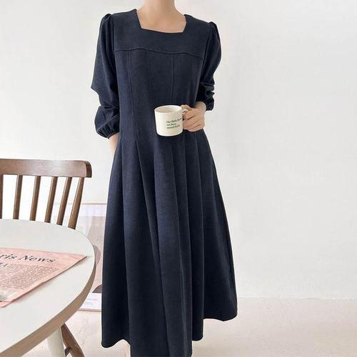 [보리맘]스퀘어 핀턱 롱 원피스 겨울 하객룩 빅사이즈 임부복