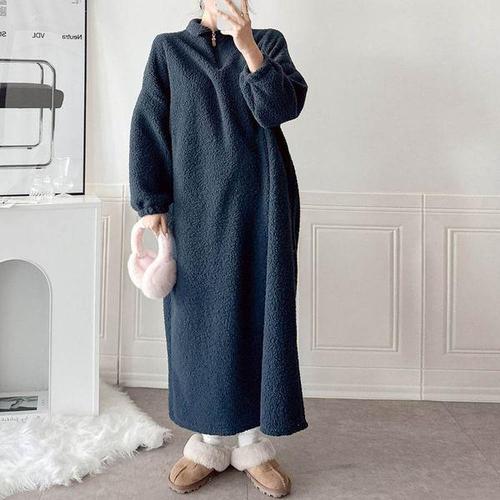 [보리맘]양털 빅사이즈 롱 원피스 겨울 홈웨어 플러스 사이즈