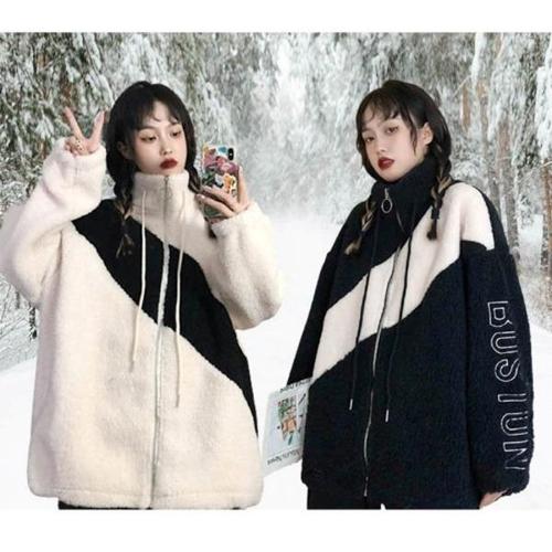 여성 겨울 캐주얼 스트릿룩 보스턴 퍼 반목 양털 집업