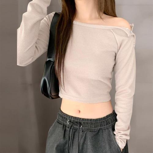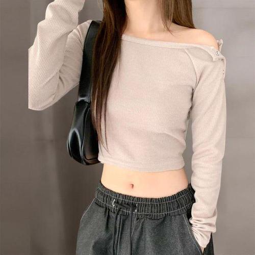 TEMU 봄과 가을용 긴팔 V넥 캐주얼 오프숄더 탑