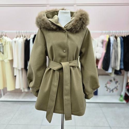 [샤틴]퍼 탈,착 후드넥 소매볼륨 코트S254K761C
