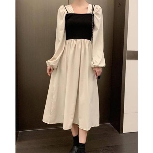 갤러리아_여성 아너 소매 배색 봄가을 원피스