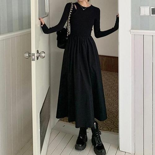 [엄지척]여자 베이직 스타일 롱원피스 1P 봄가을 고품질 치마_19956765_667501