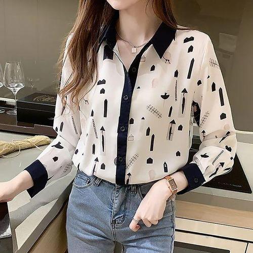 [에이치플러스몰]여성 출근룩 오피스룩 셔츠 프린트 블라우스 봄 코디