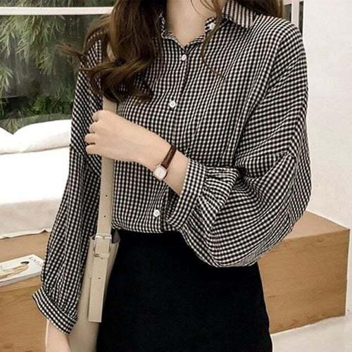 [신상오픈런]여성용 봄가을 오버사이즈 체크 패턴 캐주얼 셔츠