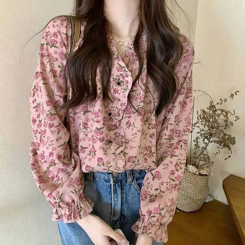 [셀럽하우스]여성 UPBL5039 플라워 블라우스 프릴 루즈핏 셔링 소매 봄 신상