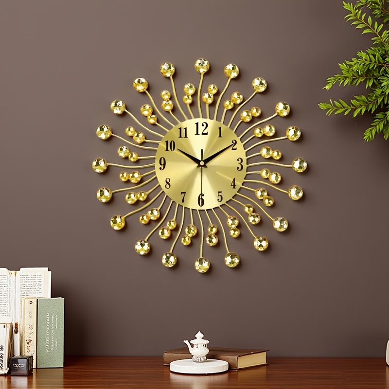 TEMU 1개 모던 금속 벽시계 - 골드 라디얼 라인, 내구성 있는 주철 제작, 거실/주방/침실용 큰 시계판, AA 배터리 구동 (배터리 별도) - 집들이 선물 추천, 우아한 디자인, 현대적 인테리어 소품, 고품질 구조, 세련된 시간 측정기