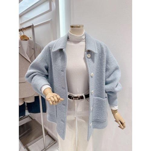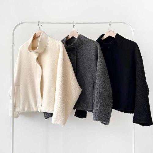 [바이어스]부클 카라 숏 코트 겨울 싱글 크롭 여자 자켓 코디 룩 (11441114)
