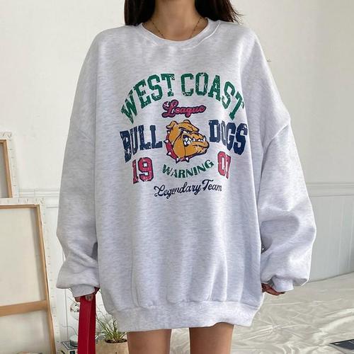 불독 긴팔 BOX 맨투맨 여성 오버핏 티셔츠 (4컬러) 박시핏 빅사이즈
