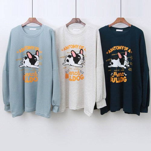 [탑보이]미니불독 자수 오버핏 맨투맨 (IN018)