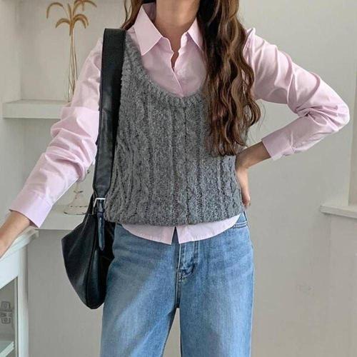 데이소이 여성용 짧은 뷔스티에 니트 조끼