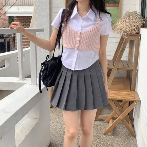 퍼프 블라우스 흰셔츠 크롭 레이어드룩 뷔스티에 조끼 베스트