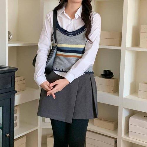 [핏강추/레이어드/2col] 리즌 일체형 뷔스티에 니트 셔츠 타이 머플러 세트
