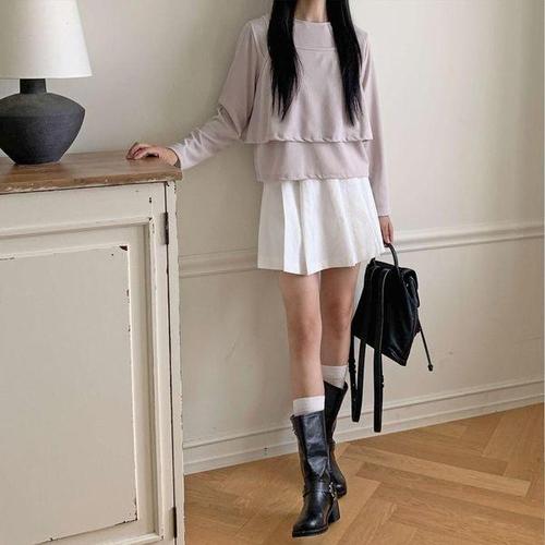 (긴팔추가/세트템/구김) 로베리 링클 뷔스티에 레이어드 블라우스 bs8373