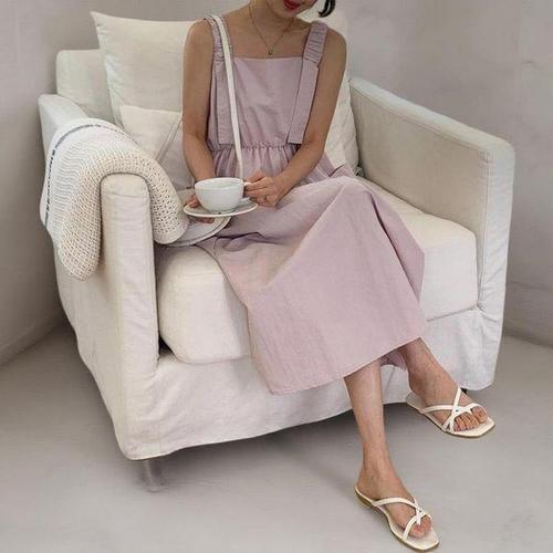 (55~66) 린넨 하객룩 여름 뷔스티에 끈 나시롱원피스