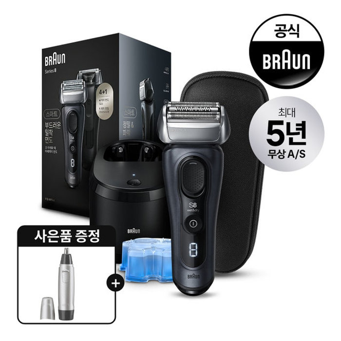 브라운 [BRAUN] 브라운 전기면도기 NEW 시리즈8 SMART 8563cc 그레이 + 코털 제거기 추가 구성 [8F63][BT01]