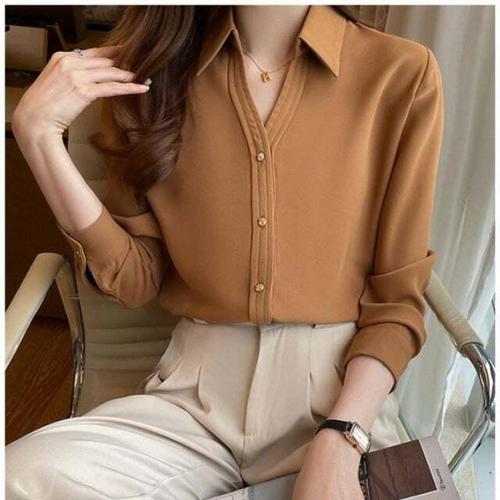 비침 없는 원단, 세련된 브라운블라우스로 자신감 있는 스타일을 완성하세요.