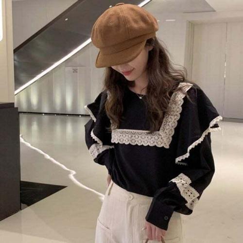 [셀럽하우스]브라운 UGCF7527 레이스자수 블라우스 블랙