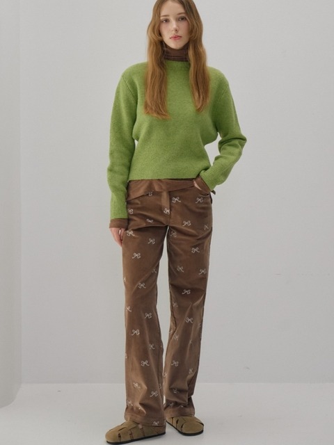[오쿠카] 리본 코듀로이 스트레이트 팬츠 브라
