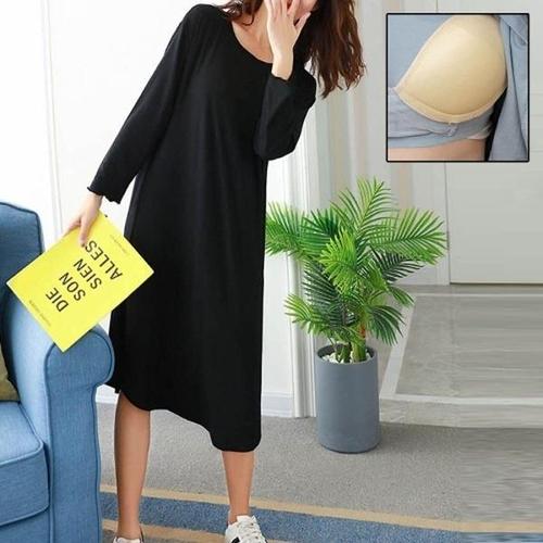 [엄지척]브라캡 일체형 데일리 편한 캡내장 긴팔 브라 원피스_19862012_667501