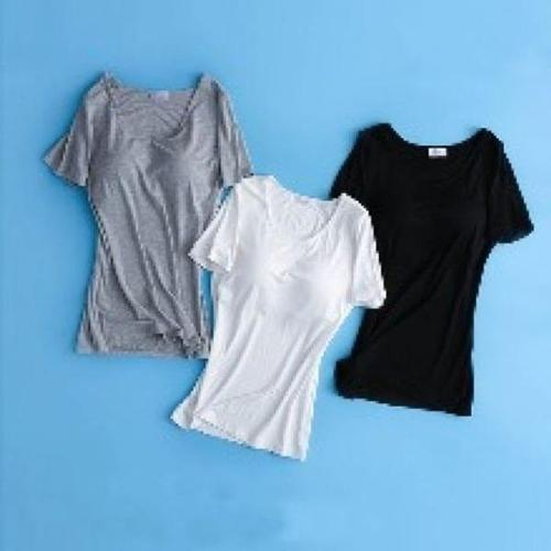 [다잇템_패션]여자 라운드 브라캡 부드러운 반소매 티셔츠_3