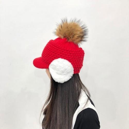 [기타 BRAND]로로얼로이 여성 겨울 골프 니트 귀마개 모자 그라데이션 퍼 방울 니트 스키장 등산 TA2193861
