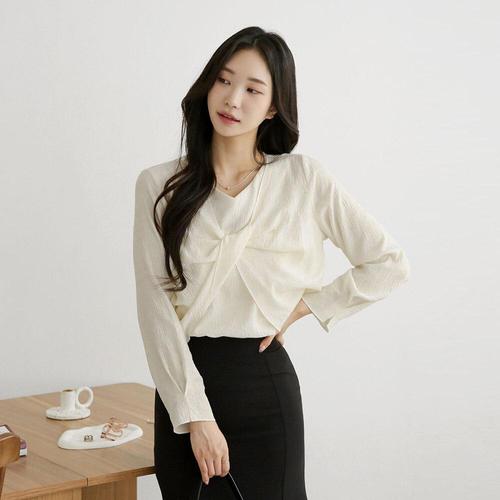 [기타브랜드]우아한 트위스트 포인트 브이넥 블라우스