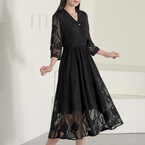 [브이와이][VY] 여자 레이스 봄가을 브로치 여성스러운 오피스룩 원피스_15983746_588847