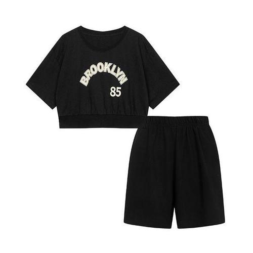[바닐라비]여성 브루클린 크롭 티셔츠 밴딩 쇼츠 세트