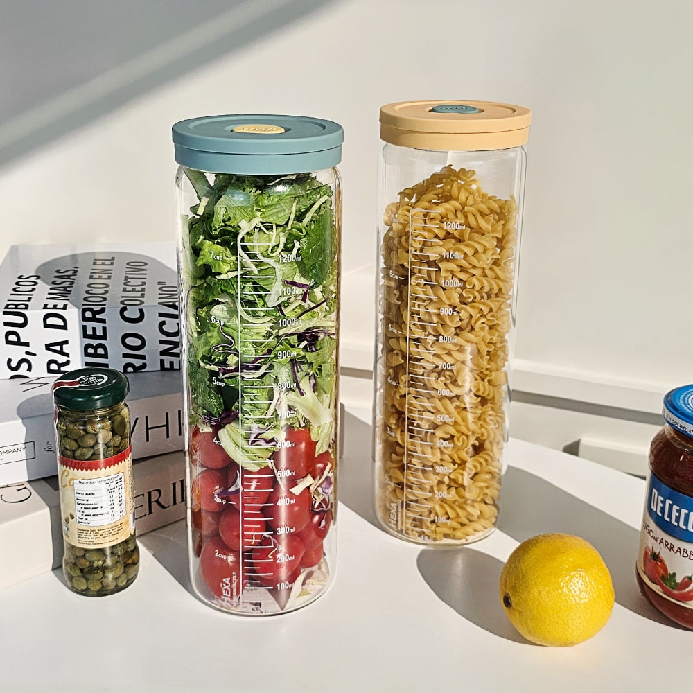 헥사 내열유리 눈금유리병 투톤실리콘캡 2종세트 1400ml 가족 보리차 음료 대용량