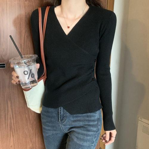 금장 버튼 브이넥 긴팔 니트 HH-D52