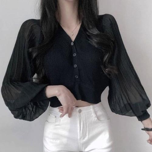 [엄지척]브이넥 퍼프 가디건 블라우스 LM0175 니트 여성 롱 숙_19659316_667501