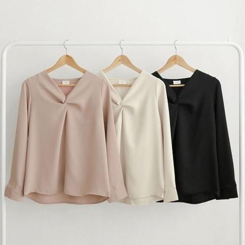 [다잇템][다잇템] 여성 V넥 출근용 데일리 트위스트 롱슬리브 블라우스_23287642_588872