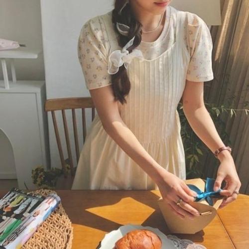 [다잇템]여성 스트랩 핀턱 V넥 SS 벌룬소매 원피스
