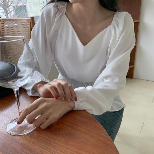 [신상오픈런]여자 아이보리 브이넥 핀턱 프릴 찰랑핏 블라우스