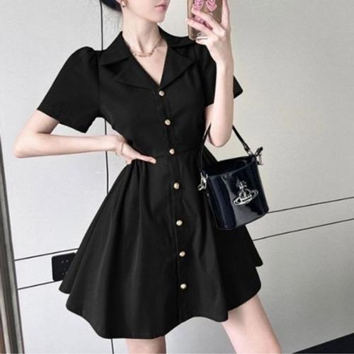 [신상오픈런]|KDO3599|츄이렌 긴 슬리브 원피스 웨이스트 볼륨 핀턱 여성 숏슬리브 V넥_18170854_597559