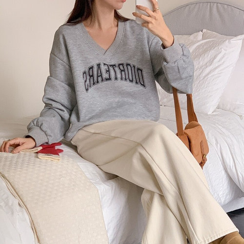 [옷자락] 여자 오버핏 나그랑 속기모 루즈 무지 브이넥 맨투맨
