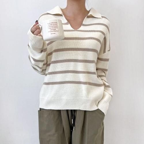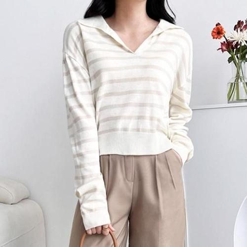 블레오 여자 브이 카라넥 단가라 스트라이프 니트 DM2512161552