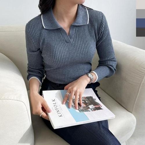[포커스]배색카라 브이 니트_FS5A7KT0013