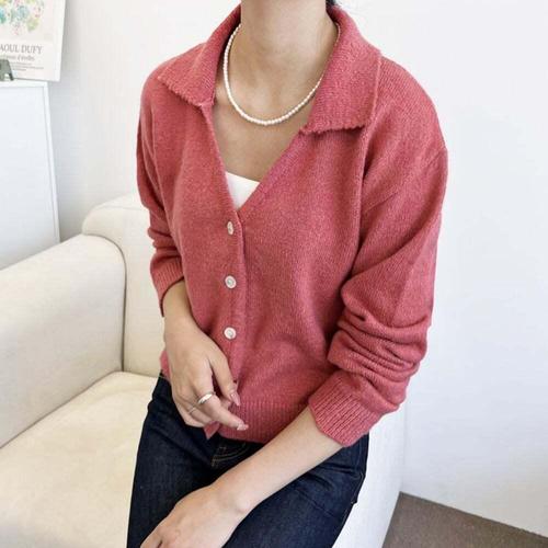 [셀럽하우스]5033 XAXY7405 핑크데일리 가디건 여성 카라브이 니트