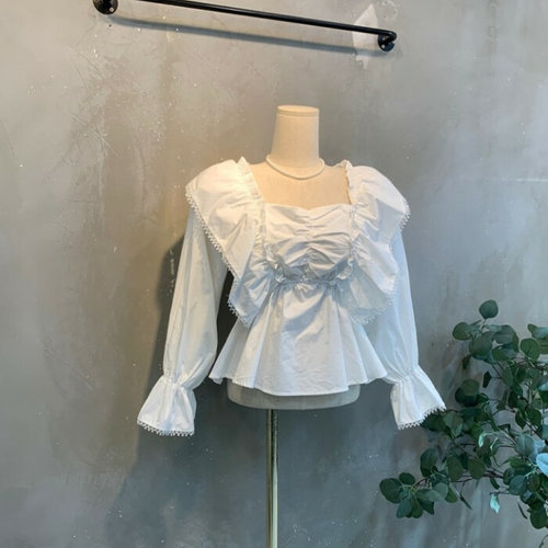 씨샵인더룸 / 히덴 스퀘어넥 프릴 레이스 밴딩 블라우스 2color C
